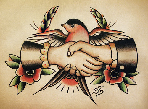Swallow Handshake Traditional Tattoo Flash Parlor Tattoo Prints