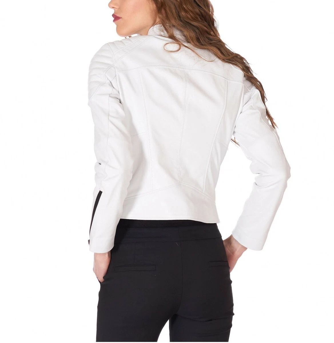 Jacket Leather Womens Size Moto Motorcycle Biker Women Genuine Coat Fit White 37 Ebay